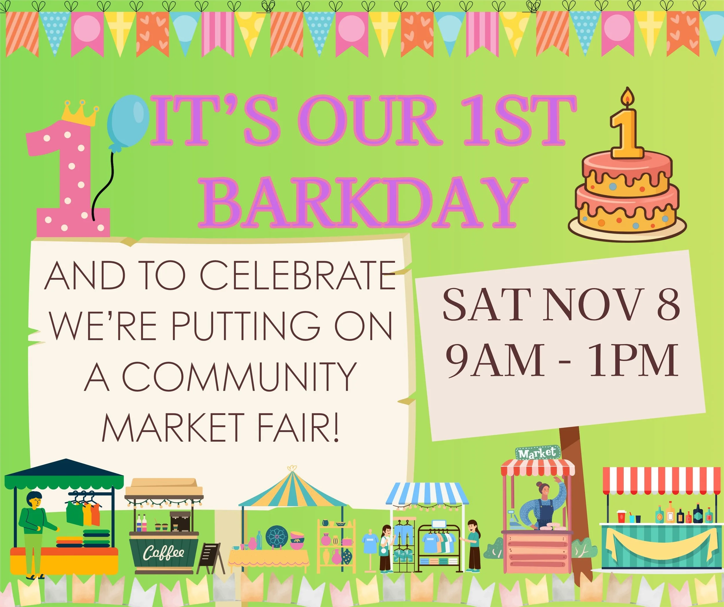 We’re marking the occasion with our 1st Barkday Market — a community fair celebrating all things dogs!